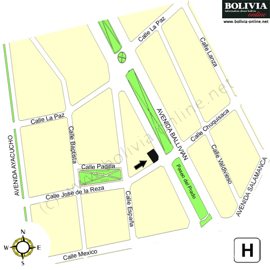 El Hotel está situado en el Paseo del Prado, principal avenida cochabambina rodeada de inigualable vegetación. Su particular ubicación permite un rápido acceso al centro administrativo, bancario y comercial de la ciudad, así como también al aeropuerto y principales carreteras al interior del país.