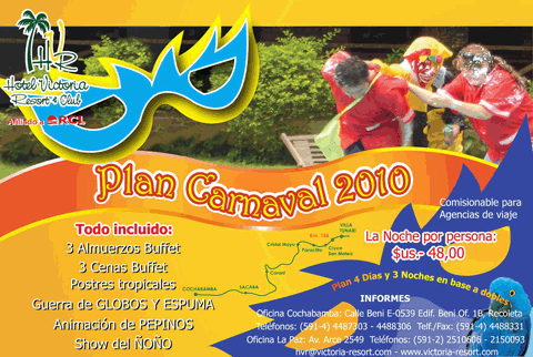 Reservas: +591-4-4487303, +591-4-4488331, +591-4-4488306