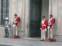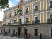 “La Casa de Gobierno de La Paz no es un monumento de la época virreinal, tampoco procede su construcción del período en que la ciudad se convirtió en el centro político de la nación, desde 1899. El Palacio fue erigido entre los años 1845 y 1852, durante las presidencias de Ballivián y de Belzu. Es este un bello edificio, diseñado según cánones de la arquitectura clásica; sus líneas son elegantes y severas, con reminiscencias italianas. El Palacio está unido al nombre del arquitecto paceño José Nuñez del Prado, inspirado en los palacios del renacimiento romano, edificado en los estilos arquitectónicos dórico, jónico y corintio."