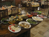 El Arriero ofrece distintas variedades de carnes a la parrilla, acompañada de guarniciones a elegir, un buffet de ensaladas.