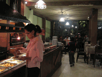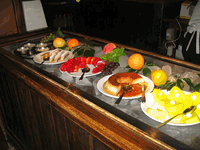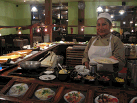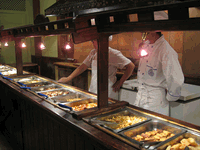 Cubierto libre, buffet de mariscos, pastas, comida típica, ensaladas y buffet de postres, además de parrillada rodicio y comida china.