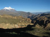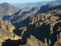 Located 30 km. southeast of La Paz is the picturesque town of Palca. The nearby canyon of the same name is 8 km. long beginning in the Abra de Ovejuyo (and ending in the town of Palca) and offers great views of snowcapped Illimani mountain. Here, interesting rock formations resemble gothic cathedrals and obelisks sculpted by water to a height of over 200 meters which leave at the bottom of the canyon a flat plain, a kind of avenue which goes 8 km. all the way throughout the canyon.